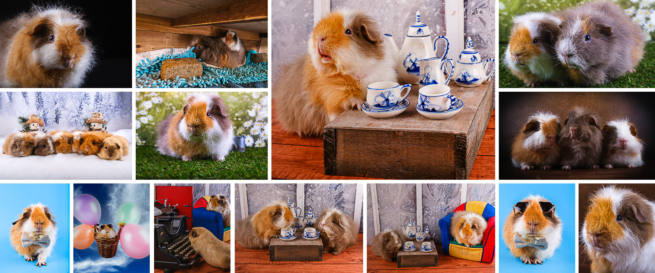 Het wil maar niet echt vlotten met het weer en dus de cavia’s maar weer eens op de foto gezet, de samenstelling wijzigt nog weleens omdat het vrij tere diertjes zijn. Soms worden ze heel oud, soms ook niet. Daarom …