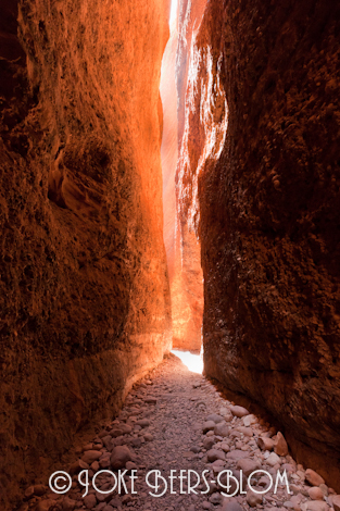 Alleen midden op de dag schijnt de zon in deze kloof, ongelofelijk mooi maar ook problematisch vanwege het enorme contrast, de is heel goed gelukt omdat de belichting op een vrij donker deel is ingesteld
