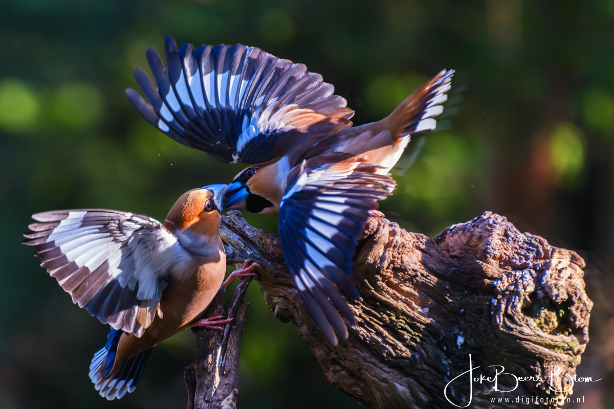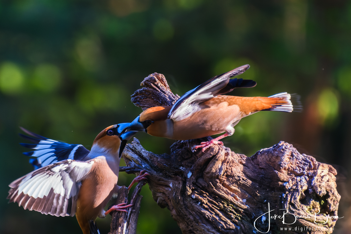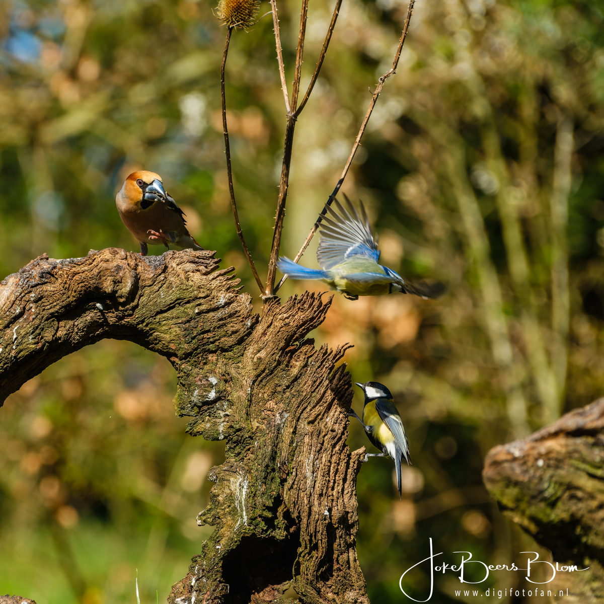 Afgelopen dinsdag ben ik met buurvrouw Francis naar de veldhut van Geurt Besseling in Uddel geweest. Het kwam heel goed uit dat de hut heel dichtbij de weg, een smalle landweg, ligt want ik had mijn voet en met name mijn teen gekneusd en dat liep niet bepaald prettig (ter info er zit vooruitgang in gelukkig). Dit is werkelijk een van de fijnste hutten waar ik ooit geweest ben, er zijn er nog een paar zo maar de meesten zijn niet uitgerust met droogtoilet, waterkoker om koffie en thee te zetten, het voer stond klaar, een heerlijke kachel die we in de uitgegraven hut heel goed konden gebruiken en een hele fraaie omgeving. En deze hut is ook nog eens prima betaalbaar, de hut is ingericht voor twee personen. Er zijn ook pittenzakken en schommelkopen, je kunt kiezen wat je wilt. Wij hebben geen van beiden gebruikt omdat het eigenlijk heel prima zo ging. Ik heb ook heel veel met de 70-300 mm lens gefotografeerd, in sommige gevallen was de 150-600 mm simpelweg teveel van het goede. Er kwamen een kleine 20 soorten vogels voor de hut waaronder mijn favoriete appelvink en ook een havik kwam buurten, Voor mij geen nieuwe soorten maar voor Francis was dit allemaal helemaal nieuw, vorig jaar zijn we naar Emmen geweest maar daar fotografeerden we feitelijk in een hele grote volière, hier leven de vogels gewoon in het wild en dat is heel anders fotograferen. Maar ook ik blijf dit leuk vinden, zeker omdat je in veel hutten heel andere vogels ziet dan bij ons, appelvinken en boomklevers, om er een paar te noemen, zien we hier niet. Het was ook nog eens stralend weer met prima licht dus kortom we hebben een topdag gehad met heel veel foto’s! Geurt Besselink heeft ook een boshut, mogelijk dat we die ooit ook eens gaan boeken. Ik vond in deze hut ook de interactie tussen de diverse vogels erg gaaf.