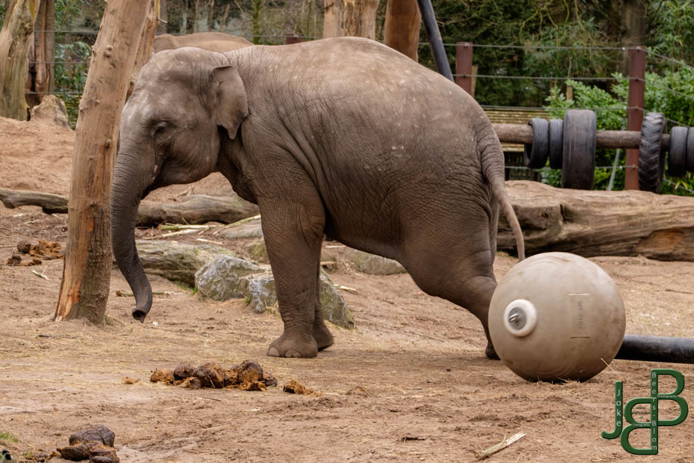 Ik had besloten alleen met de 100-400 mm lens te fotograferen, het gevolg is dus dat ik veel close-ups van de dieren heb en laat ik dat nou net zo leuk vinden 🙂 Er zit natuurlijk een nadeeltje aan, als je een olifant wilt fotograferen moet je een flink stuk naar achteren! Maar ook dat was geen probleem want het was er rustig, het voordeel van een frisse, grijze dag maar een ideale dag om hier lang te vertoeven! Mijn sluitertijd had ik op 1/250e en ook deels op 1/200e seconde gezet en het diafragma op f/5,6, de ISO-waarde stond op Auto want ook met hoge ISO-waarden levert de Fuji X-T1 fantastische foto’s met weinig ruis af! Maar ik wilde bewegingsonscherpte voorkomen en aangezien de lichtsituatie niet helemaal ideaal was had ik ook een vrij groot diafragma nodig wat met deze lens ook weer een prachtige scherptediepte oplevert. En zo kwam ik dus met 461 foto’s thuis, ik hoorde dat Elly er 600 had dus dat viel nog mee! Natuurlijk valt er ook heel wat af want de dieren gaan echt niet mooi zitten poseren (ze hebben groot gelijk). Maar er bleef nog meer dan genoeg over en elke keer verbaas ik me weer over die ongelofelijke scherpte van de foto’s die ik met deze lens maak, ik word er elke keer weer blij van! Het enige dat ik jammer vind is dat deze lens met de 1,4 teleconverter voor 100 euro erbij vlak na mijn aanschaf kwam, voor 100 euro had ik die er graag bij gehad, los vind ik deze te duur is namelijk 428 euro! Maar op het totaal van deze lens had ik die 100 euro niet echt uitgemaakt, maar goed als je alles van tevoren weet is het makkelijk! Ik blijf heel blij met deze lens 🙂