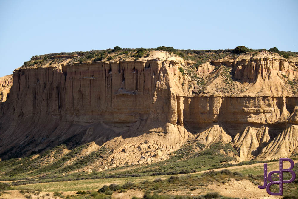 Las Bardenas Reales bestaat uit drie gebieden, het vlakke deel is een zandvlakte, het witte deel is het mooie deel met alle prachtige vormen en het zwarte deel is wat minder droog en hier zijn donkere pijnboom bossen, een groot contrast maar ook dit zal t.z.t. door erosie verdwijnen. Het zwarte deel zal dan tijdelijk de plaats innemen van het huidige witte deel maar ook dat zal verdwijnen.