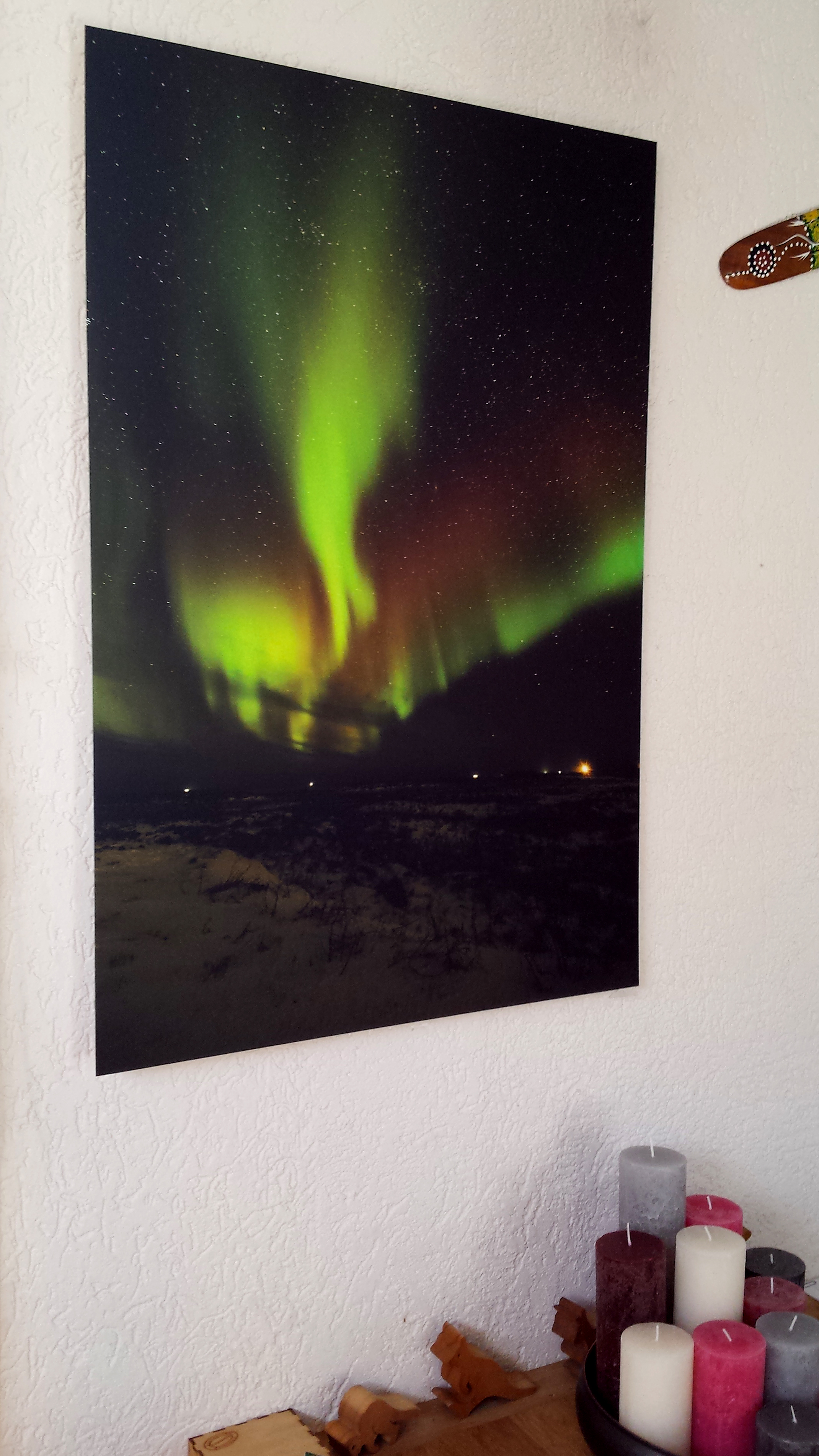 Ik had een bon voor een gratis foto op Xpozer met wisselframe, een foto op formaat 60 x 90 cm ter waarde van € 75,00. Uiteraard wilde ik die wel gebruiken maar had geen idee wat ik kon verwachten, gezien de mijns inziens forse prijs moest het wel iets heel moois zijn. En ik moet zeggen het resultaat is fantastisch mooi maar ik moet daar ook heel eerlijk bij zeggen dat ik € 75,00 wel een behoorlijk bedrag vindt! Ik vind het geheel namelijk nogal kwetsbaar, als de foto van de muur af zou vallen kun je ‘m weggooien! Het papier is namelijk heel erg slap, het staat mooi gespannen op het wisselframe maar als er maar iets mee gebeurt is het einde verhaal vrees ik. De kwaliteit van de foto op zich is werkelijk super! De detaillering en kleuren zijn helemaal gelijk aan wat ik hier op mijn monitor zie, dit is een goed gekalibreerde Eizo monitor dus je mag inderdaad verwachten dat de kleuren kloppen en dat doen ze dus ook. Het voordeel is dat het materiaal niet glimt en dat kijkt natuurlijk wel heel erg mooi maar dat doen mijn foto’s op canvas ook niet, die zijn een stuk minder gedetailleerd maar doorgaans sta ik niet met mijn neus op de foto als die aan de muur hangt! En qua prijs zijn ze een stuk vriendelijker. Maar nogmaals de kwaliteit is fantastisch. Hieronder twee foto’s, weliswaar met mijn telefoon gemaakt, maar zo vreselijk slecht is dat ding nou ook weer niet 🙂