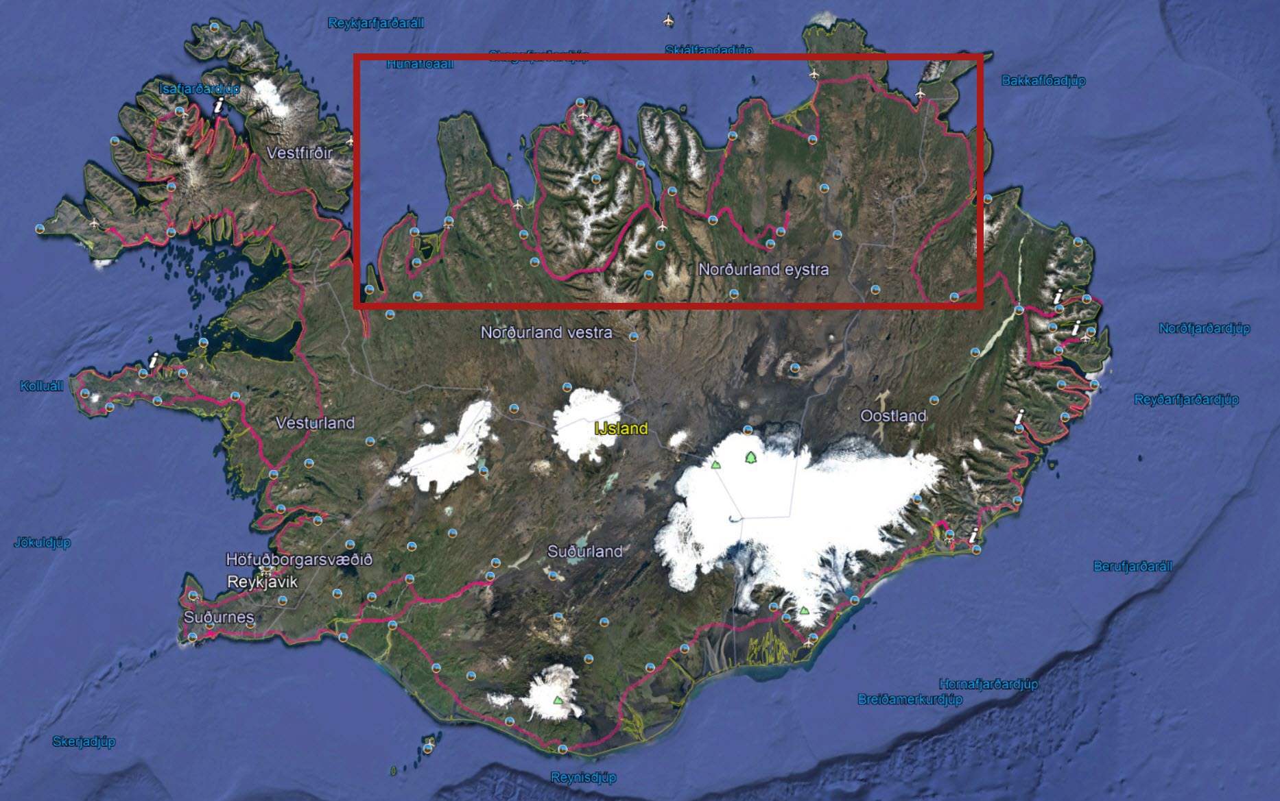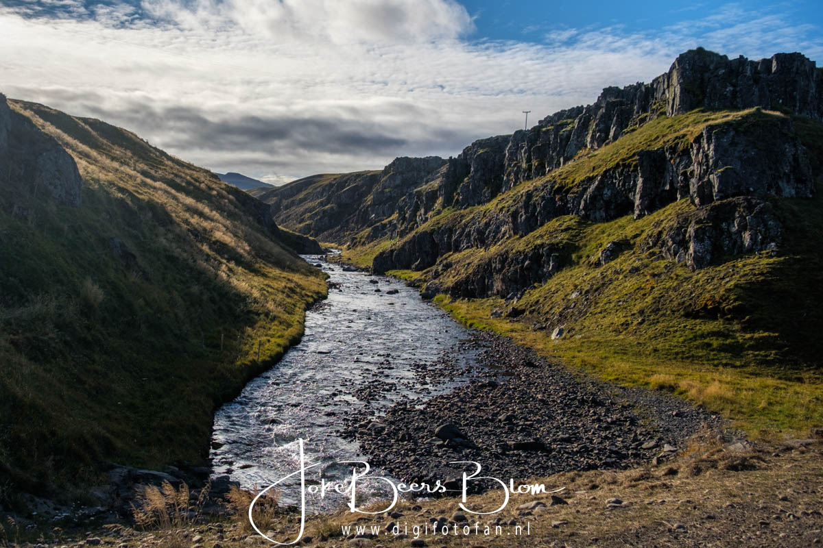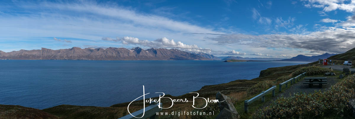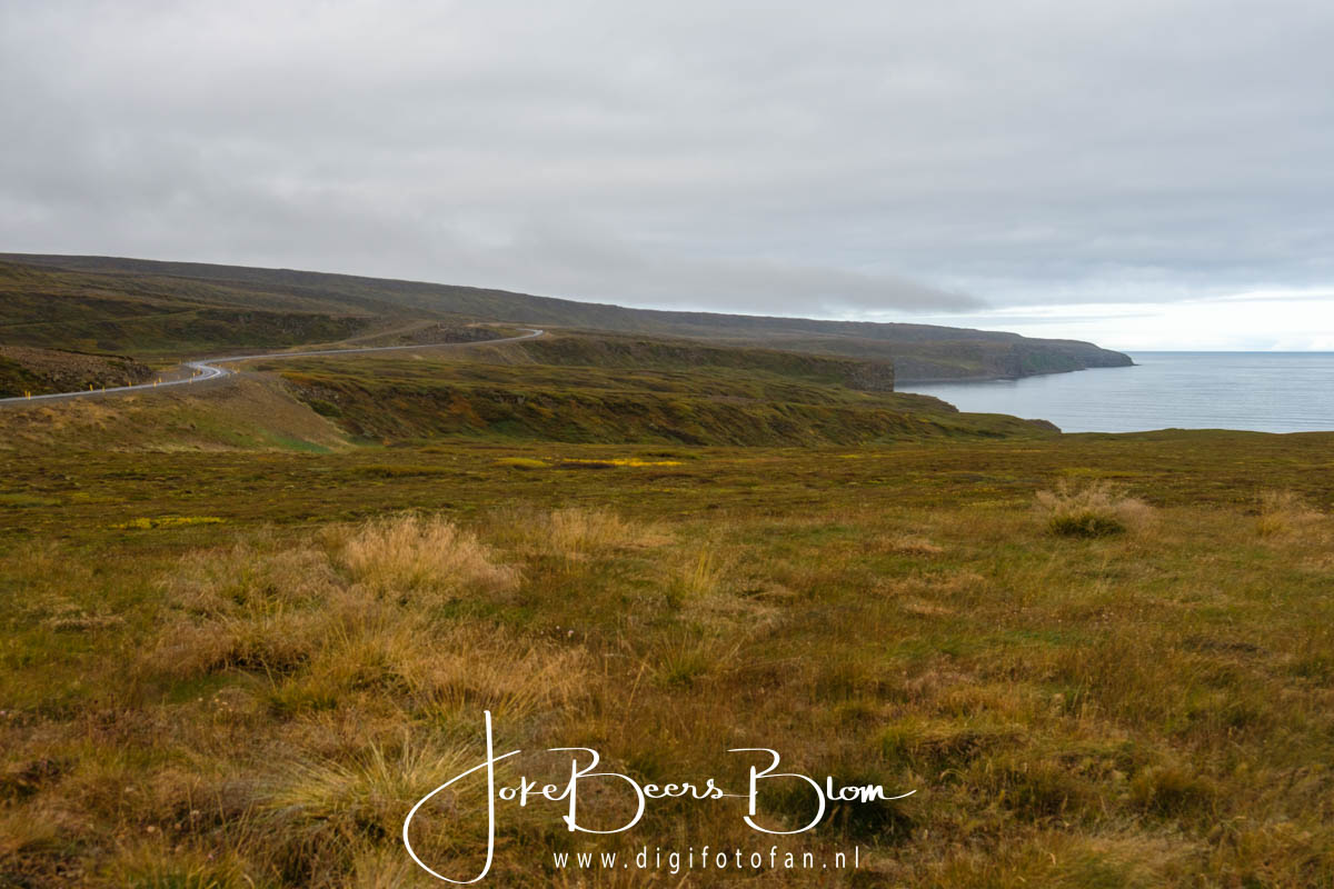Het noorden van IJsland is een weinig bezocht gebied, je kunt hier uren rijden zonder iemand tegen te komen. Er zijn ook weinig plaatsjes, Þórshöfn wordt honderden kilometers van tevoren aangegeven en is ook vrijwel het enige plaatsje in dit deel dat enigszins iets voorstelt, ook hier echter maar een paar honderd inwoners. In het noordoosten rijdt je een groot deel langs de kust en dat is echt fantastisch mooi, ruig, ruw en ongerept. Wij houden hier heel erg van dus voor ons is dit echt genieten. Wat meer naar het westen kom je richting Husavik en daar is het wel drukker, je zit dan ook in de buurt van Goðafoss, Mývatn, Hverir en Krafla, allemaal langs de ringweg nummer 1. Maar ook bij de volgende uitstulping om het zo maar te noemen is het weer heel rustig, Siglufjörður is een heel leuk plaatsje aan de gelijknamige fjord, een lange tunnel verder ligt Olafsfjörður. De serie Trapped is grotendeels in Siglufjörður opgenomen en deels in Seyðisfjörður waar de ferry aankomt en vertrekt en de pas die in de serie genoemd wordt is ook de pas naar Seyðisfjörður maar de gebouwen e.d. staan daar niet maar in Siglufjörður, het kerkje herkende ik meteen en dat was niet het beroemde blauwe kerkje 🙂