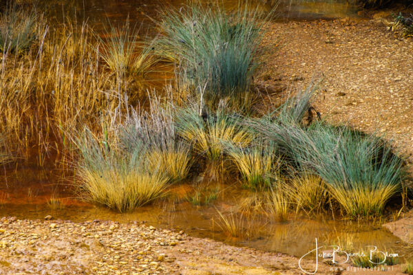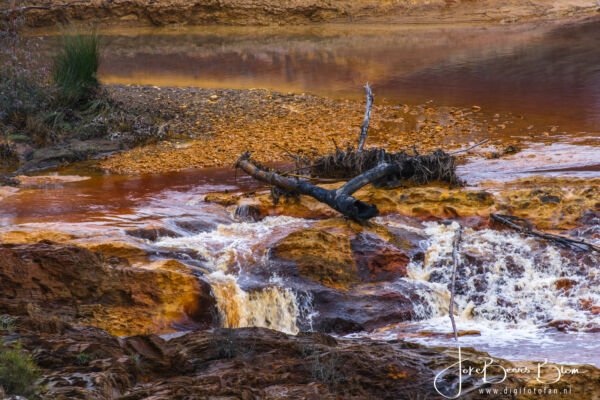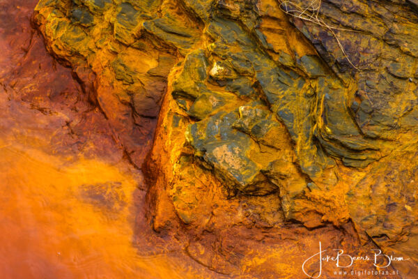 Deze keer hebben we bewust de rivier opgezocht, die hadden we eigenlijk nog nooit echt gezien. We hebben een paar routes gereden, de eerste plek waar we bij de rivier kwamen was niet ver van het dorpje Berrocal, als je richting Valverde del Camino gaat dan kom je over de brug over de Rio Tinto en daar kun je ook een prachtige wandeling maken en dichtbij de rivier komen, echter in dit water gaan staan is niet aan te raden. Als resultaat van de vele mijnbouwactiviteiten rond de rivier is de rivier waarschijnlijk zwaar vervuild en zeer zuur. In het water leven bacteriën die leven van de opgeloste metalen zoals ijzer en koper in het water. De grond rond de Río Tinto in de provincie Huelva is rijk aan mineralen, langs de rivier wordt al zo’n 5.000 jaar zilver, ijzer, koper en goud gewonnen. Het ontginnen heeft in de loop der tijd gezorgd voor bijzonder gevormde landschappen. En bovendien is het rivierwater van de Tinto rivier door de aanwezigheid van koper en zilver in het water koperkleurig!