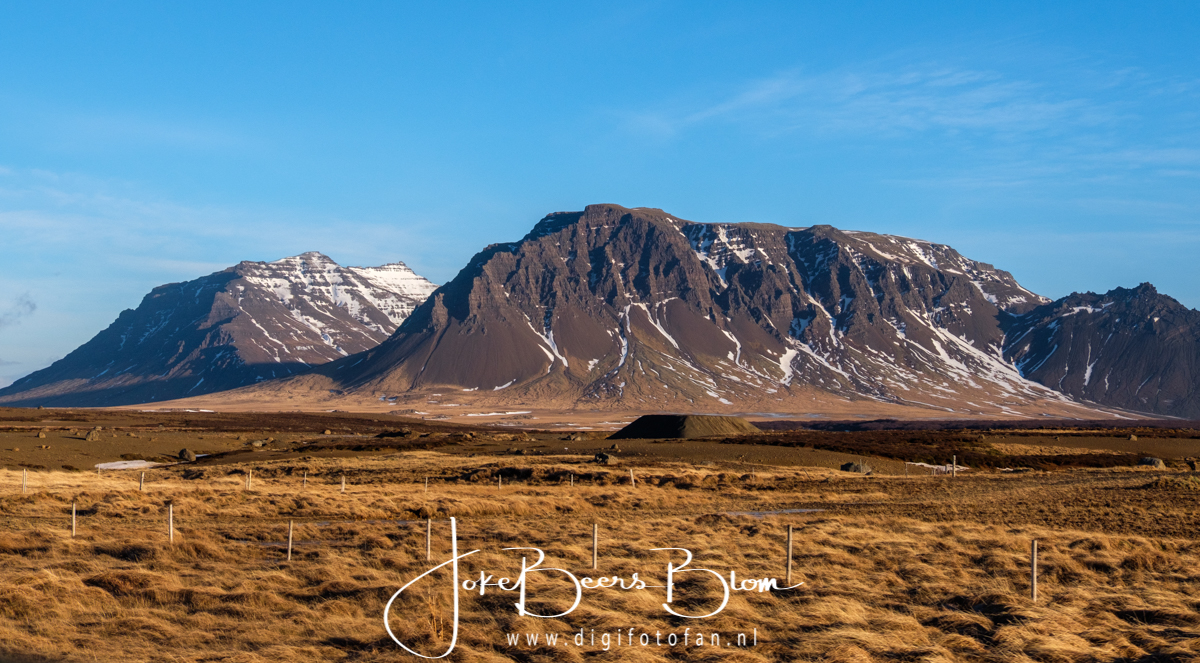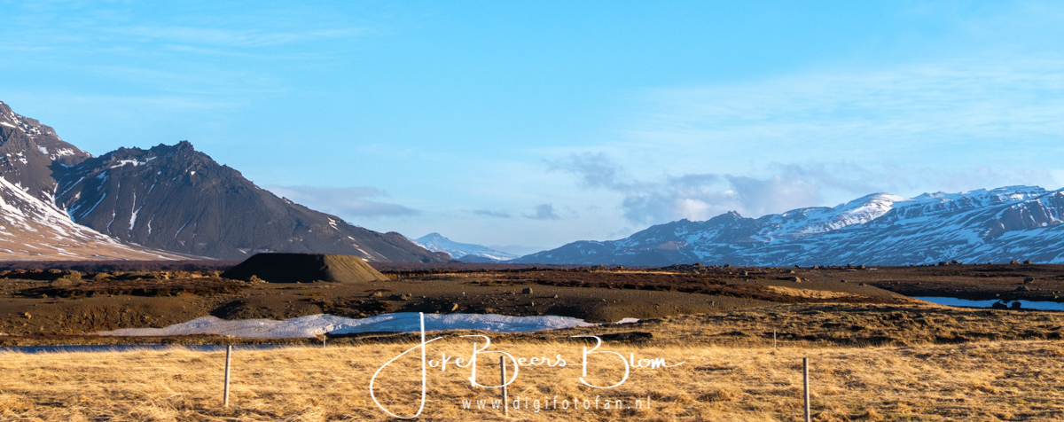 Het eerste stuk tot Bogarnes kende ik, daar zijn we vorig jaar ook langs gekomen en waar we nu linksaf gingen, gingen we toen rechtsaf richting noorden, ook prachtig overigens! Dit eerste deel gaat tot aan de lunch in Olafsvik, we zijn echt langs een onbeschrijfelijk mooie route gereden, het allermooiste van dit eerste deel vond ik het stuk waar we rechtsaf gegaan zijn, het stukje naar het noorden door de bergen was zo waanzinnig mooi. Maar feitelijk kregen we de hele dag het ene prachtige vergezicht na het andere voorgeschoteld.