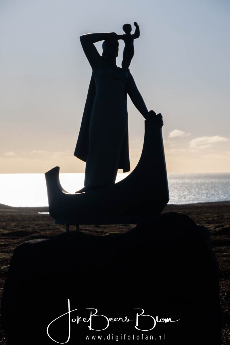 De volgende stop was bij Londranger waar we een prachtig uitzicht op de kust en de basaltrotsen in zee hadden, koud maar fantastisch. En niet veel verder stopten we wederom bij Laugarbrekka om het momentje voor Guðríður Þorbjarnardóttir te bekijken, over het verhaal hierachter later een aparte blogpost.