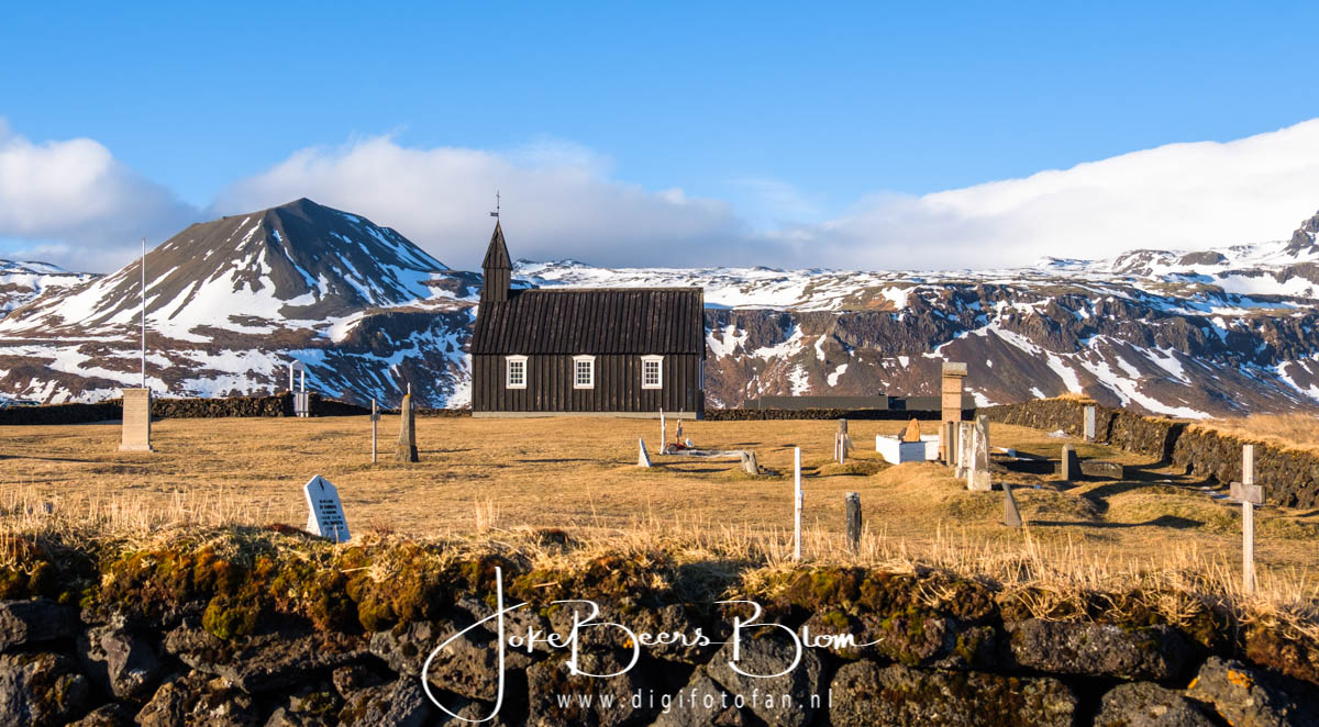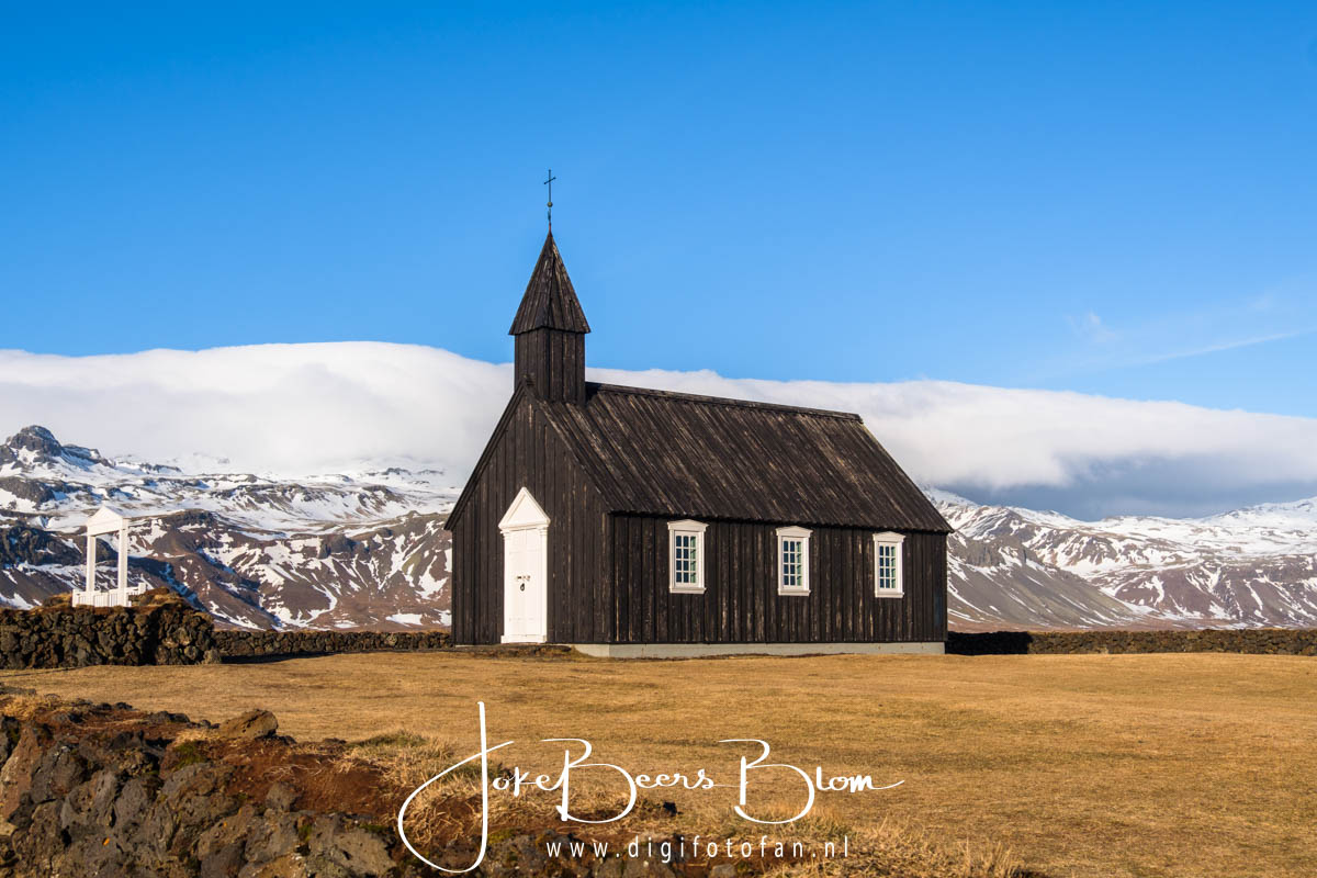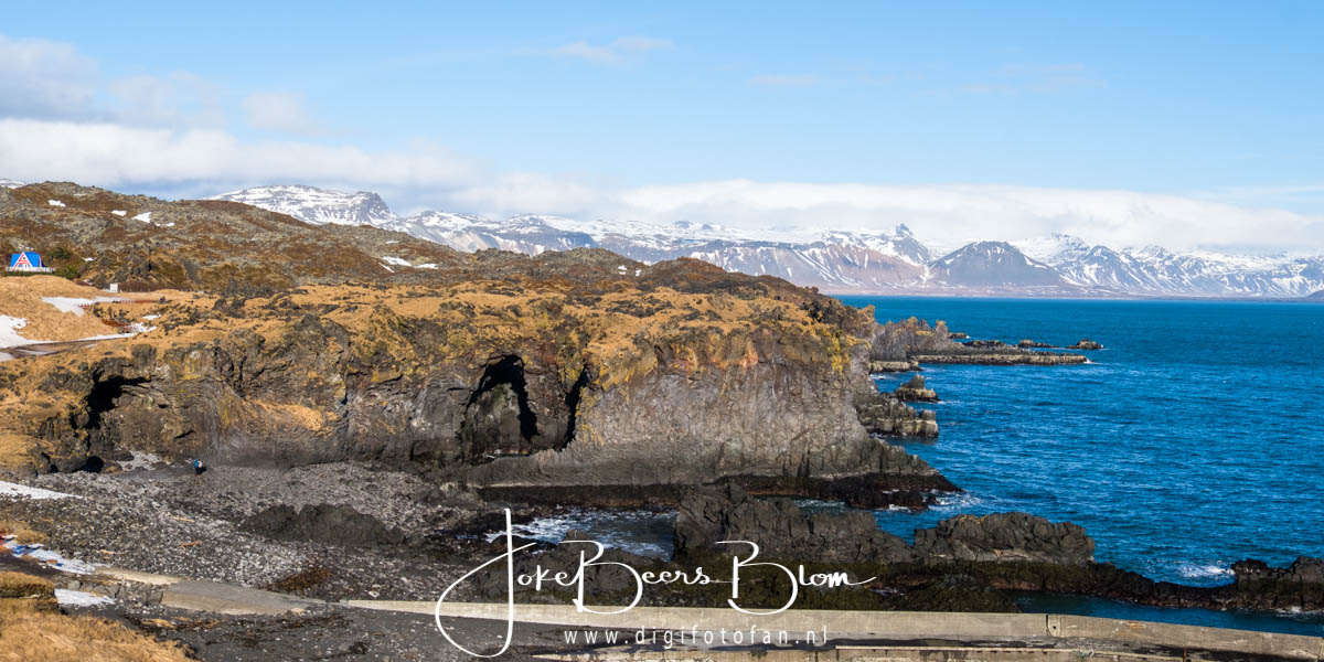En toen kwamen we in Hellnar aan waar we een fantastisch uitzicht hadden op de kust en de Grumpy Troll (zie foto’s) ik vond het ook wel een beetje een “Trumpy” trol eerlijk gezegd, het kapsel is zichtbaar 🙂 En o jee ook daar zagen we weer zo’n schattig kerkje waar Elly helemaal gek van is (ze zijn ook geweldig leuk) en wat Jon de opmerking “you with your bloody churches” ontlokte 🙂 Het mooie van die kerkjes is dat ze heel klein zijn en meestal tegen een achtergrond van majestueuze bergen staan, dat maakt het zo mooi!