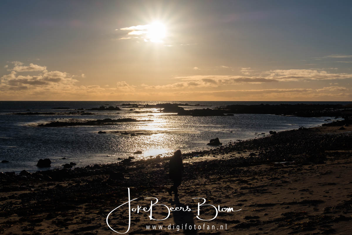 Daarvandaan moesten we nog een heel eind rijden maar desondanks nog twee keer gestopt, de eerstvolgende stop was bij het zwarte Budakirkja, een van de weinige zwarte kerkjes. Het was daar prachtig met inderdaad een achtergrond van hoge bergen. De laatste stop was bij Ytri Tunga, een strand waar vaak zeehonden liggen, we zijn daar naartoe gelopen maar helaas geen zeehonden maar ach we hadden al zo verschrikkelijk veel moois gezien!