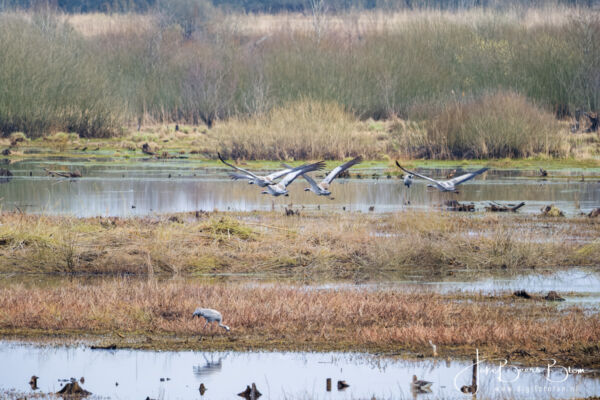 Je kunt ze heel goed op het uitzichtpunt Trandansen (de dans van de kraanvogels), hier worden ze ook gevoerd, dit doet men om te voorkomen dat ze in de akkers van de boeren gaan foerageren. Er is 12 kilometer verder ook een groot bezoekerscentrum Naturum Hornbergasjön, wanneer er hele grote aantallen zijn kun je de kraanvogels ook hier zien, nu waren er echter geen kraanvogels. Maar ook dit is een prachtig gebied met heel veel vogels, het was nu nog aan de vroege kant maar er was al behoorlijk wat te zien maar in de velden komt het wat later, die zijn nog maar kort sneeuwvrij. Het is prachtig aangelegd met vlonders en veel uitzichtpunten. Het is allemaal ook prima te bezoeken door rolstoelgebruikers, ook bij Trandansen is dat het geval. Campers parkeren iets verder maar je kunt ook naar het parkeerterrein bij het kleine bezoekerscentrum daar rijden. Je kunt op beide plekken ook met de camper overnachten, dat kost 150 Zweedse kronen, 14 euro, waarvan men weer voer voor de kraanvogels bekostigt. Sommige camperaars klagen daarover omdat een auto niet hoeft te betalen maar die blijven niet overnachten en bovendien als je je die camper kunt veroorloven kan die 14 euro er ook nog wel af! Ik vind het geweldig dat ze die mogelijkheid bieden, er zijn verder geen voorzieningen maar dat hoeft ook niet.