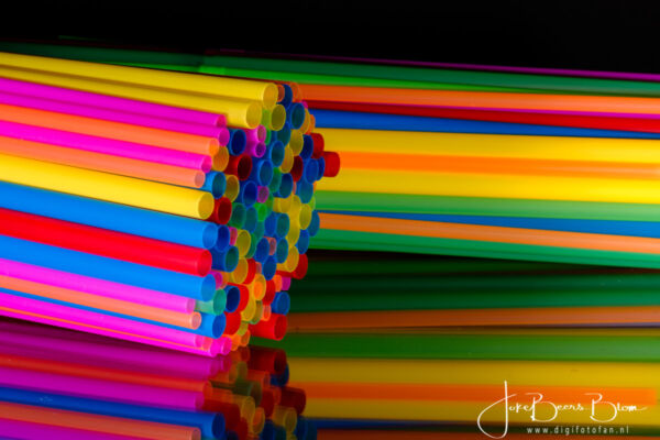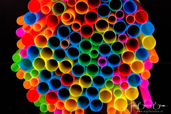 Ik vond een pak met rietjes en bedacht dat ik daar weleens wat leuks mee zou kunnen doen, alleen beetje weinig kleurtjes dus even online gekeken en nog wat kleurtjes gescoord. Het is buiten niet bepaald aangenaam dus lekker binnen aan het stoeien geweest met camera, flitsers en dus rietjes. Ook nog met een bosje tulpen maar dat komt later 🙂 Het werd een lekker kleurrijk geheel. Ik heb met de Fujifilm X-T4 i.c.m. de 16 mm f1.4 lens gewerkt, het leuke aan die lens is dat je van wel heel dichtbij scherp kunt stellen plus dat het ding haarscherp is. Daarbij heb ik twee Nissin i60a flitsers gebruikt wat met name bij de foto’s met de zwarte achtergrond heel goed resultaat gaf, met de witte achtergrond had ik wat meer last van lastige schaduwen, daarvoor vind ik mijn studiolampen handiger maar dat is echt een persoonlijk iets. Verder heb ik met en zonder plexiglas gewerkt voor een leuke spiegeling. Het plexiglas kwam zo uit de verpakking maar toch zie je bi een zwarte achtergrond letterlijk alle stofjes, minuscule krasjes enz. Maar het blijft leuk om mee te stoeien. En nu maar hopen op een flink pak sneeuw volgende week, wij zitten in ieder geval redelijk in het noorden van het land waar de kans het grootste is 🙂 We gaan het zien. Voor nu eerst hieronder eens serie foto’s van limonade rietjes, hoe simpel kan iets leuks zijn!