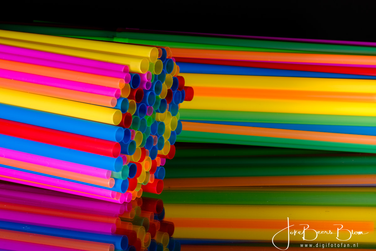 Ik vond een pak met rietjes en bedacht dat ik daar weleens wat leuks mee zou kunnen doen, alleen beetje weinig kleurtjes dus even online gekeken en nog wat kleurtjes gescoord. Het is buiten niet bepaald aangenaam dus lekker binnen aan het stoeien geweest met camera, flitsers en dus rietjes. Ook nog met een bosje tulpen maar dat komt later 🙂 Het werd een lekker kleurrijk geheel. Ik heb met de Fujifilm X-T4 i.c.m. de 16 mm f1.4 lens gewerkt, het leuke aan die lens is dat je van wel heel dichtbij scherp kunt stellen plus dat het ding haarscherp is. Daarbij heb ik twee Nissin i60a flitsers gebruikt wat met name bij de foto’s met de zwarte achtergrond heel goed resultaat gaf, met de witte achtergrond had ik wat meer last van lastige schaduwen, daarvoor vind ik mijn studiolampen handiger maar dat is echt een persoonlijk iets. Verder heb ik met en zonder plexiglas gewerkt voor een leuke spiegeling. Het plexiglas kwam zo uit de verpakking maar toch zie je bi een zwarte achtergrond letterlijk alle stofjes, minuscule krasjes enz. Maar het blijft leuk om mee te stoeien. En nu maar hopen op een flink pak sneeuw volgende week, wij zitten in ieder geval redelijk in het noorden van het land waar de kans het grootste is 🙂 We gaan het zien. Voor nu eerst hieronder eens serie foto’s van limonade rietjes, hoe simpel kan iets leuks zijn!