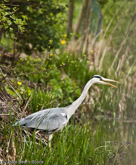 Wij zaten vanmiddag in de tuin te genieten van het zonnetje en een Belgisch biertje toen we een reiger langs zagen sluipen. Onze tuin grenst aan een sloot en daar is dus altijd wel wat te zien. Deze reiger was dus duidelijk op jacht, een machtig gezicht, het leek af en toe wel een levend standbeeld! Dus snel camera gehaald maar te laat voor de eerste prooi, Hans heeft het wel gezien, de reiger had een flinke vis te pakken die in één beweging naar binnen geslokt werd! Was sowieso moeilijk vast te leggen geweest denk ik omdat het zo snel gaat. Maar kennelijk was één vis niet genoeg en kreeg ik nog de tijd om de reiger in actie te zien, alleen helaas iets verder weg. De tweede en derde poging tot het vangen van een vis mislukten overigens. Maar wel een prachtig gezicht en heerlijk om te fotograferen natuurlijk! Deze foto’s zijn overigens allemaal op 400 mm gemaakt. Meer staan er op mijn website.
