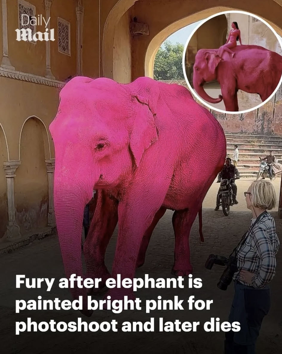 Er is veel (terechte) ophef ontstaan over een fotoshoot van de in Barcelona gevestigde Russische fotografe Julia Buruleva. Het dier werd van top tot teen roze geverfd, weliswaar met een verf die volgens de lokale bewoners vaker gebruikt wordt voor festivals en dergelijke en onschadelijk zou zijn. Helaas is de olifant kort hierna overleden, het dier was 65 jaar oud en waarschijnlijk is het door ouderdom gestorven.