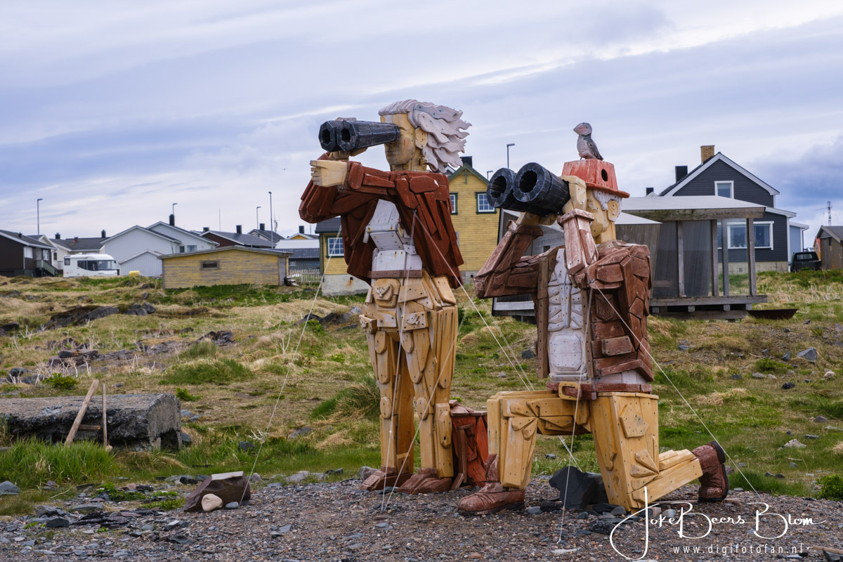 De volgende dag zijn we richting Vardø gaan rijden, je komt dan op een gegeven moment geen boom meer tegen, het is desolaat, ruig en juist daarom zo prachtig! Al jaren wilde ik heel graag naar Hamningberg maar de vorige keer zijn we omgekeerd, ook vanwege de bar slechte weg. Maar nu is dit deze route ook toegevoegd aan een van de 18 Noorse turistveger (stuk voor stuk fantastisch), deze liep al naar Vardø maar het stuk naar Hamningberg is er aan toegevoegd en de weg is een stuk verbeterd, deels helemaal nieuw, deels wat hobbelig maar prima te doen, wel erg smal maar er zijn uitwijkplekken genoeg. De camper paste er precies op! Maar wat een route, zo indrukwekkend, zo verschrikkelijk gaaf, zo genoten! Naast dat het landschap meer dan indrukwekkend is barst het er ook nog eens van de vogels! Kortom dit waren zo’n beetje de mooiste kilometers van de hele reis vond ik. Maar ik ben dan ook dol op het hoge noorden, het onherbergzame, het arctische, ik vind het geweldig. Het was overigens ook heerlijk om onder twee dekbedden te slapen terwijl thuis iedereen het bed zo’n beetje uit dreef 😉