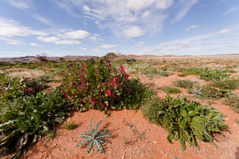 Feitelijk zijn we op de terugweg in Silverton aangegaan want we zijn eerst doorgereden naar het uitzichtpunt Mundi Mundi, een enorme vlakte strekt zich daar uit, wat een ruimte! Ook nog een stukje de outback ingegaan over een zogenaamde dirt road, als ze allemaal zo goed zouden zijn zou het een makkie zijn maar daar gaan we maar niet vanuit. In de woestijn hier groeien werkelijk fantastische planten, heel kleurrijk, dus daar de camera even lekker op losgelaten!