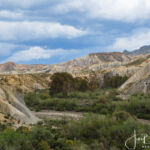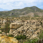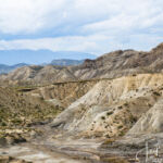 Kenmerkend voor de Tabernas woestijn is een landschap dat is ontstaan vanuit een proces van natuurlijke woestijnvorming, waar je diepe ravijnen gaat vinden die vaak zijn uitgesleten door de zeldzame en soms verwoestende regens die hier ieder jaar slechts een paar dagen per jaar voorkomen. Noodweer zoals dat alleen in droge gebieden kan ontstaan. Een klimaat waarin je als mens liever niet je stulpje wil bouwen maar waar struiken en palmbomen klaarblijkelijk kunnen overleven.
