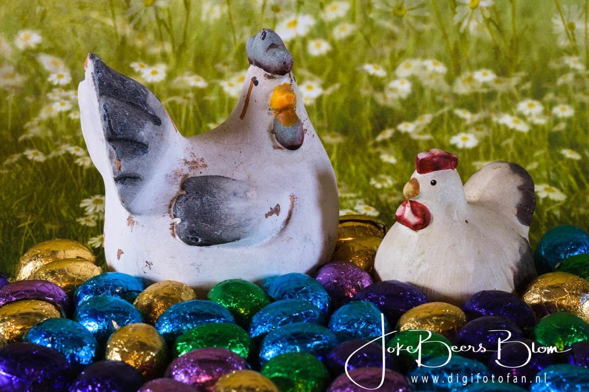 Kortom de foto-opdracht voor de club was snoep en die heb ik maar met Pasen gecombineerd 🙂 Meteen maar gedaan voordat de chocolade eitjes op zijn ……. overlevingspakket voor het weekend 😀